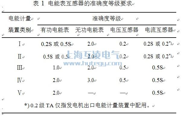 表 1電能表互感器的準(zhǔn)確度等級(jí)要求